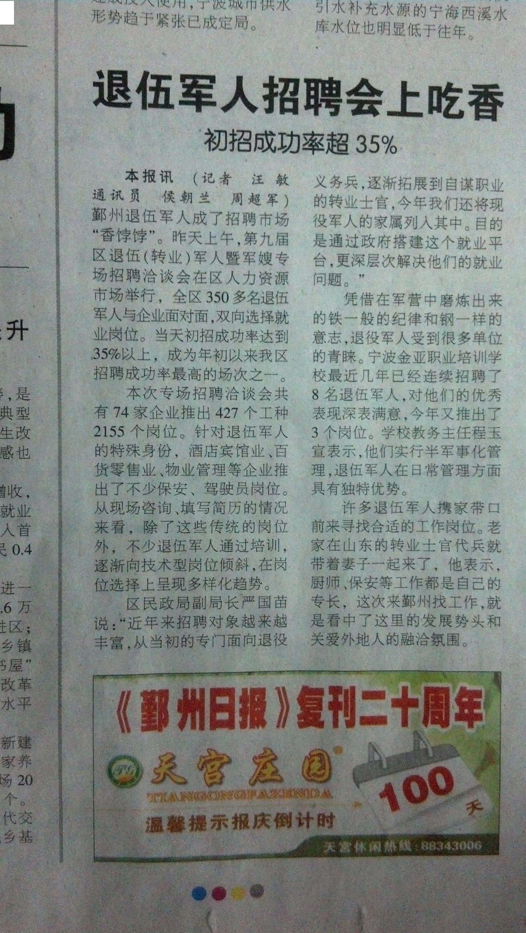 我校已连续三年承办宁波市复退军人技能培训项目。三年来,我们始终把复退军人的职业技能教育培训工作放在首位。累计培训600余人,合格率100%。受到广大复退军人的一致好评和各级相关政府的认可。与此同时,在复退军人就业方面,我校给予积极的配合与支持。先后累计开放8个岗位,优先保障复退军人的再就业。受到了市、区两级民政部门通报表扬。相关新闻也屡见报端。