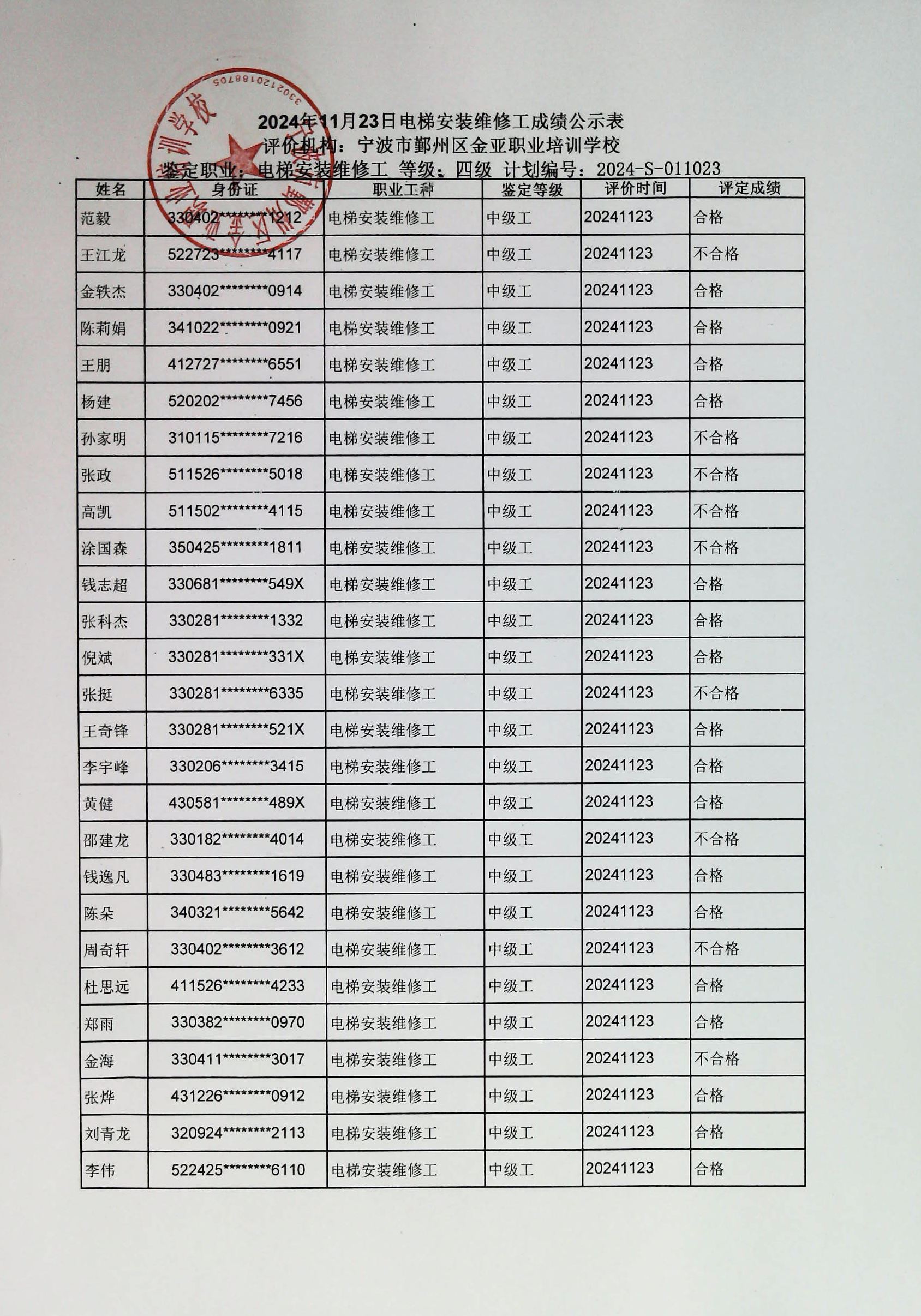 金亚职业技能等级中级认定考试圆满结束,考试成绩结果予以公布!