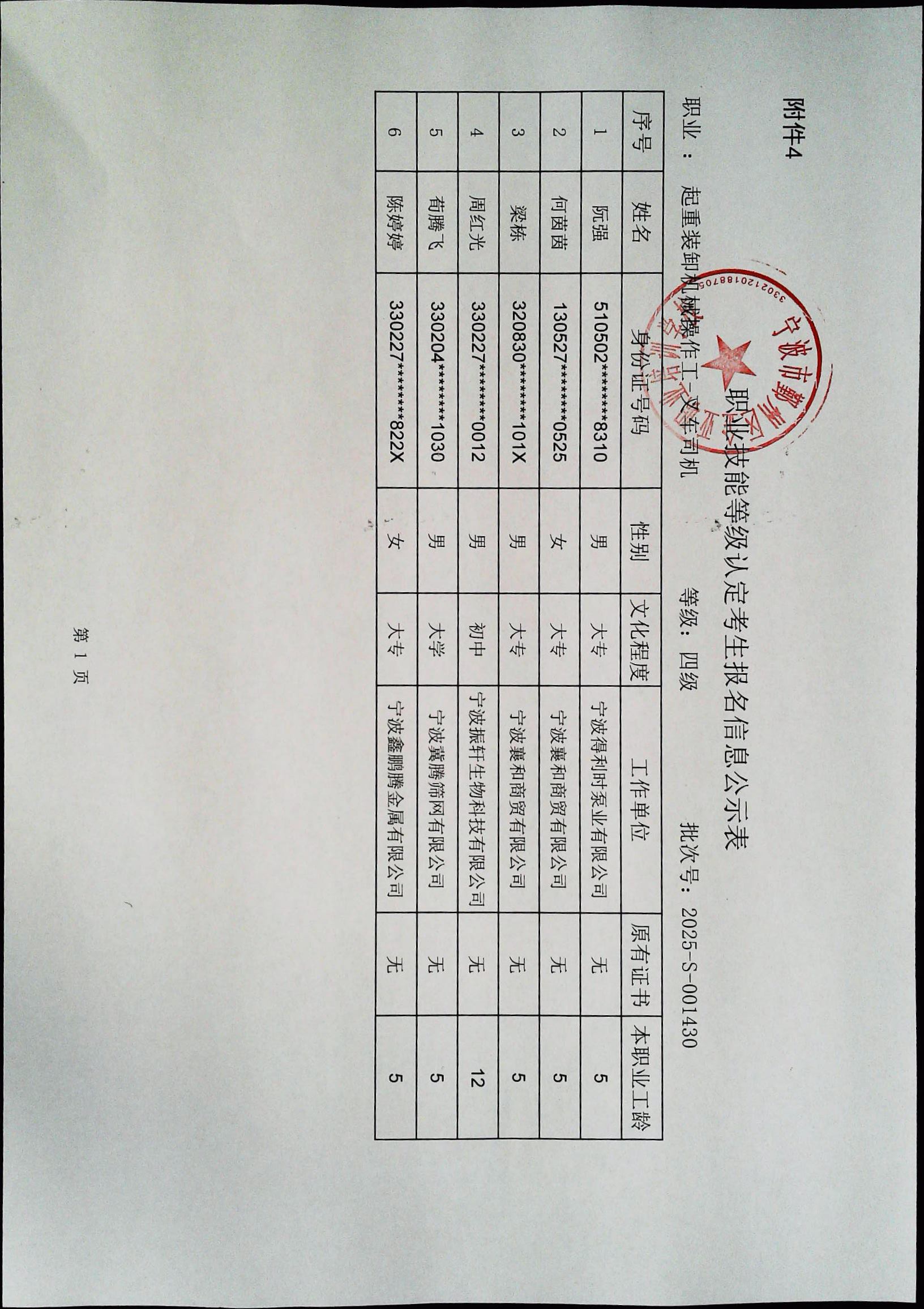 按照宁波市人社局鉴定中心公开叉车司机等级认证考试公告规定的程序,把鄞州区人社局鉴定中心审核通过名单进行公示,现公示名单附件: