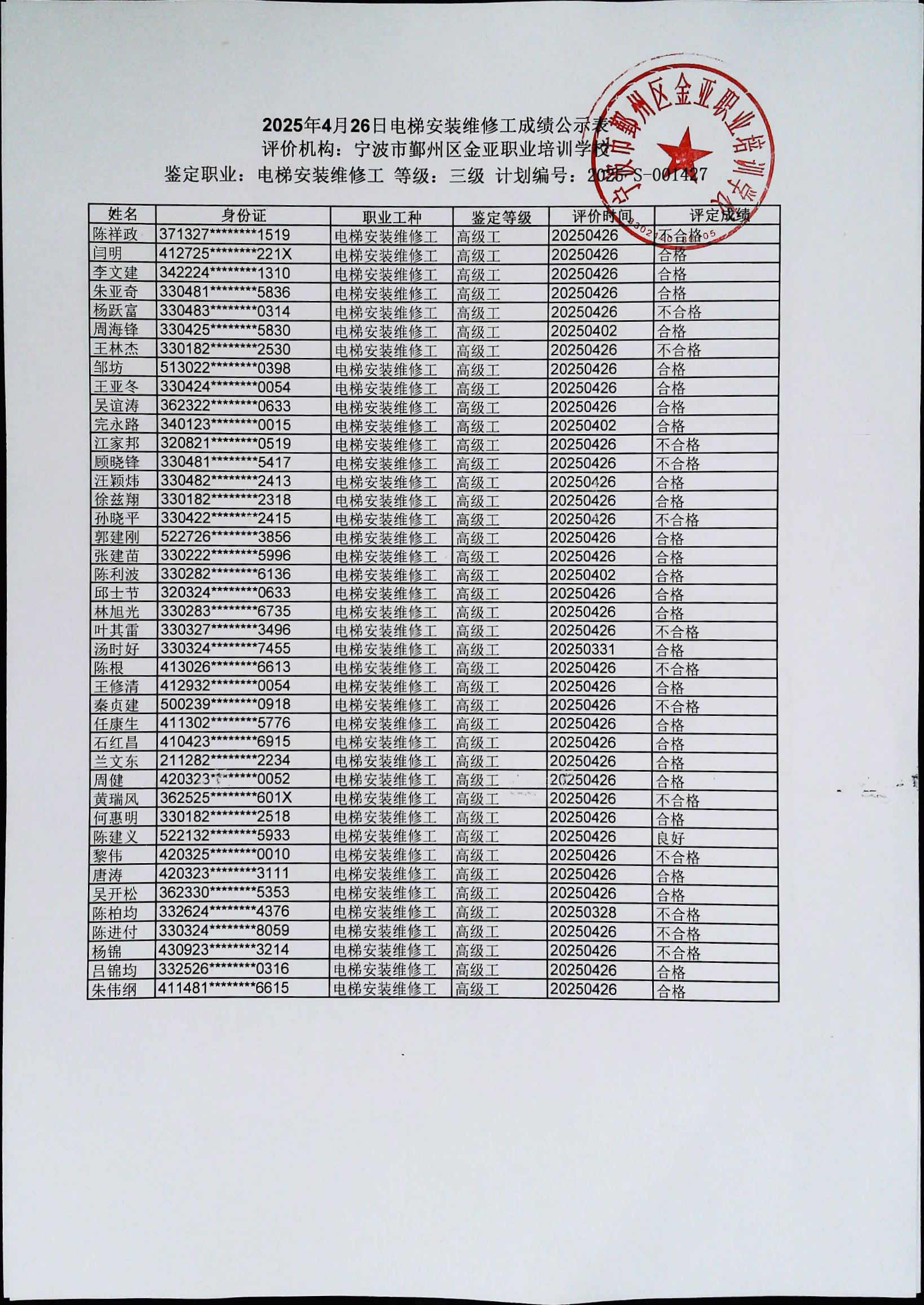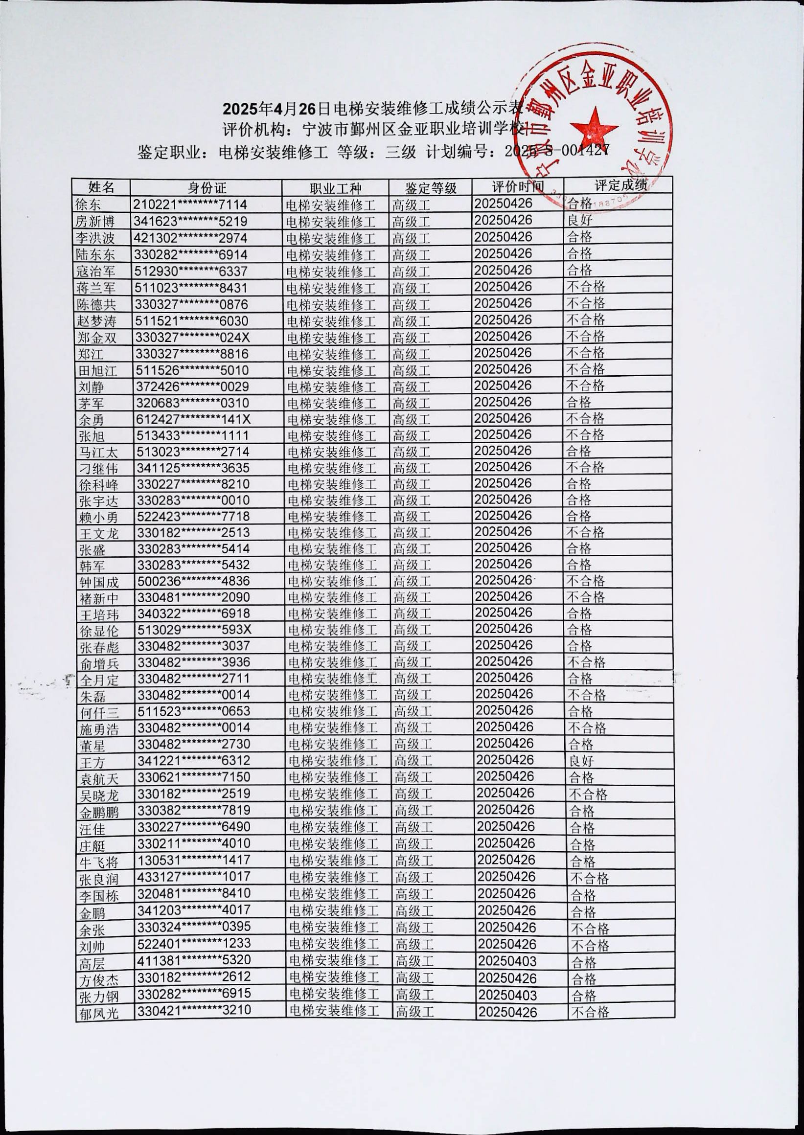 金亚职业技能等级高级认定考试圆满结束,考试成绩结果予以公布!
