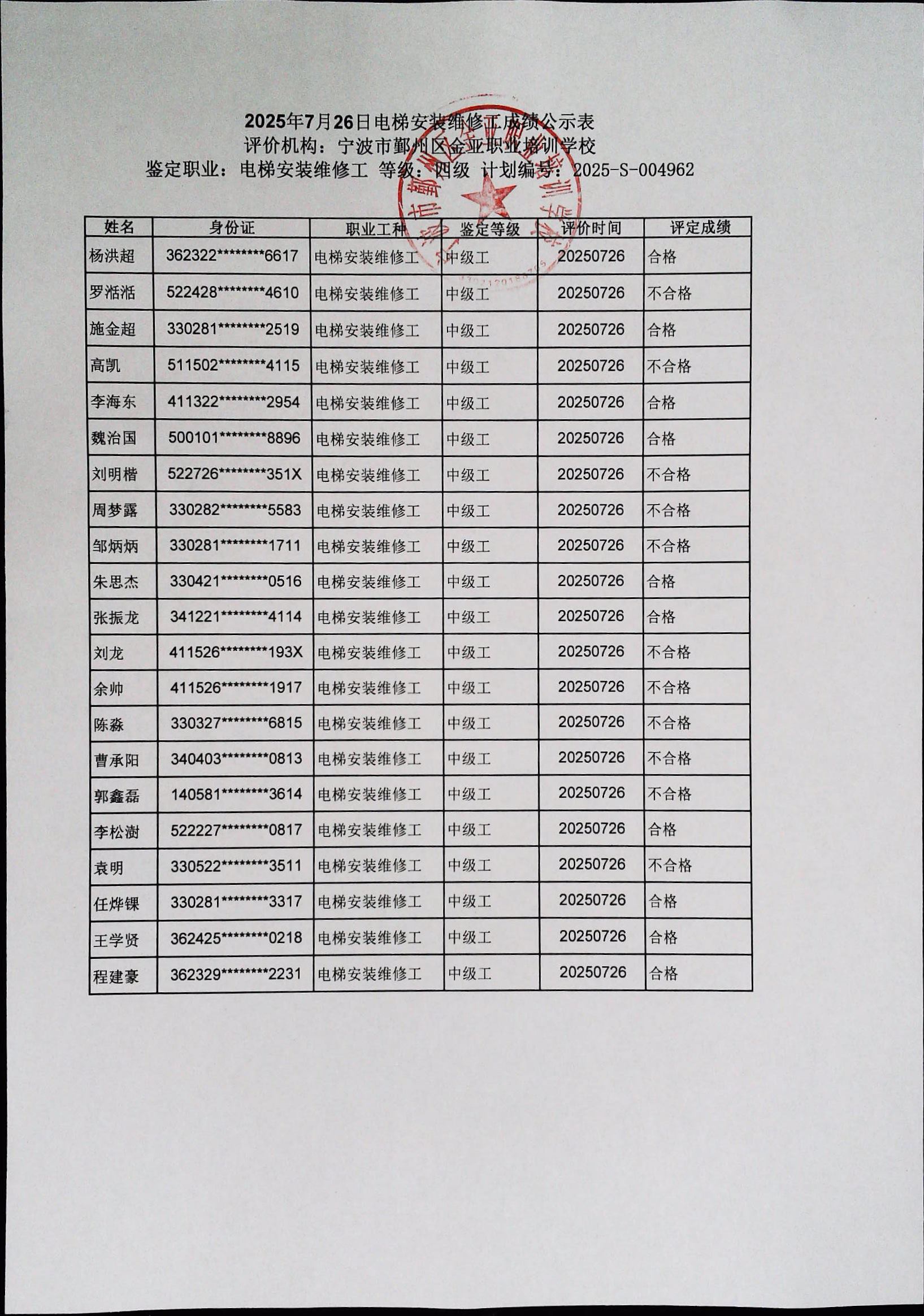 金亚职业技能等级中级认定考试圆满结束,考试成绩结果予以公布!