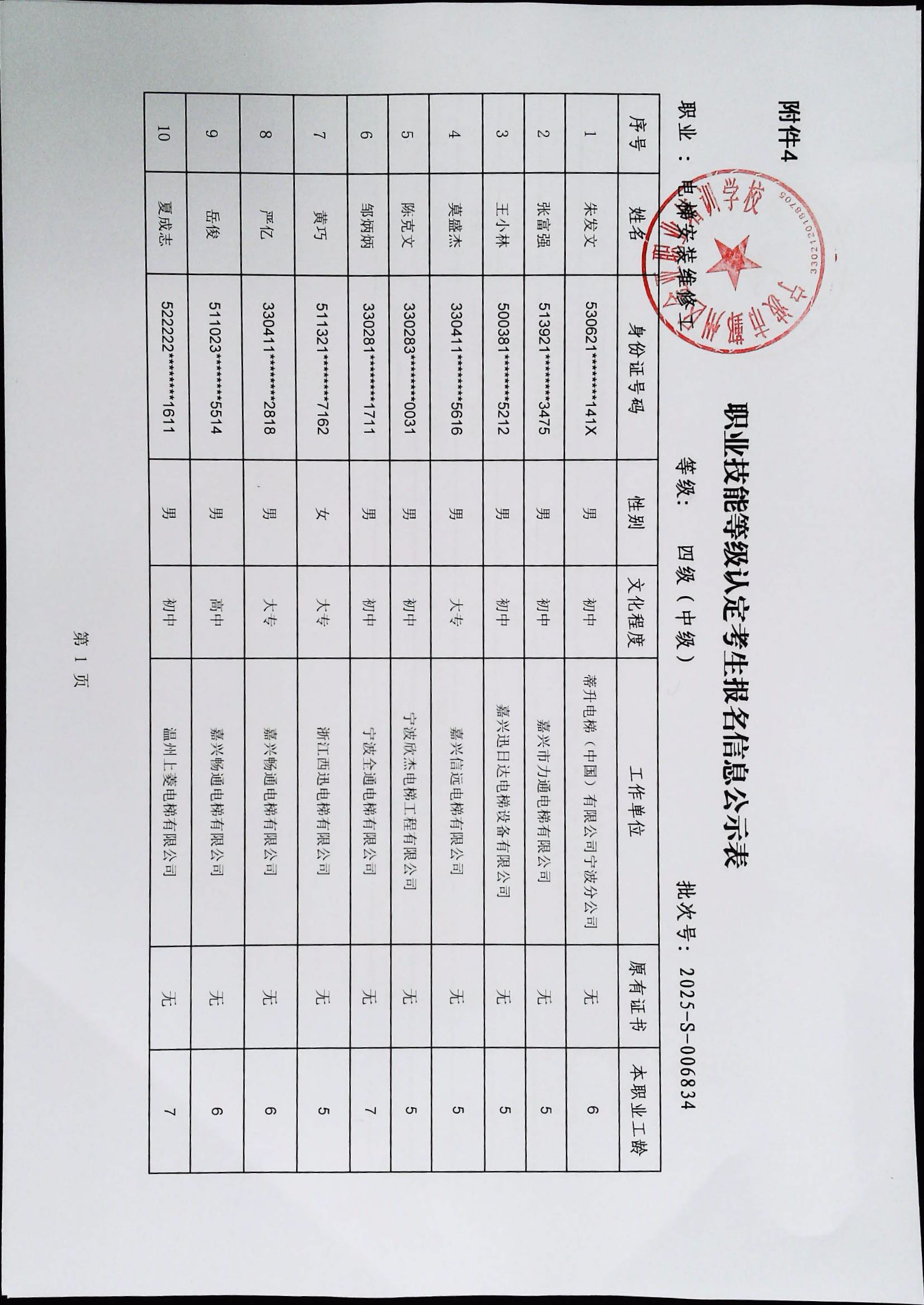 按照宁波市人社局鉴定中心公开电梯安装维修工等级认证考试公告规定的程序,把鄞州区人社局鉴定中心审核通过名单进行公示,现公示名单附件: